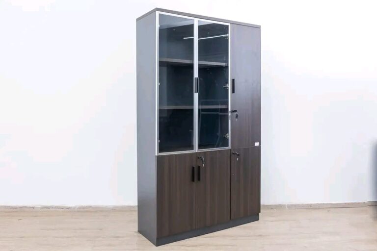 3-Door Wooden Cabinet – Spacious Office Storage with Lockable Doors